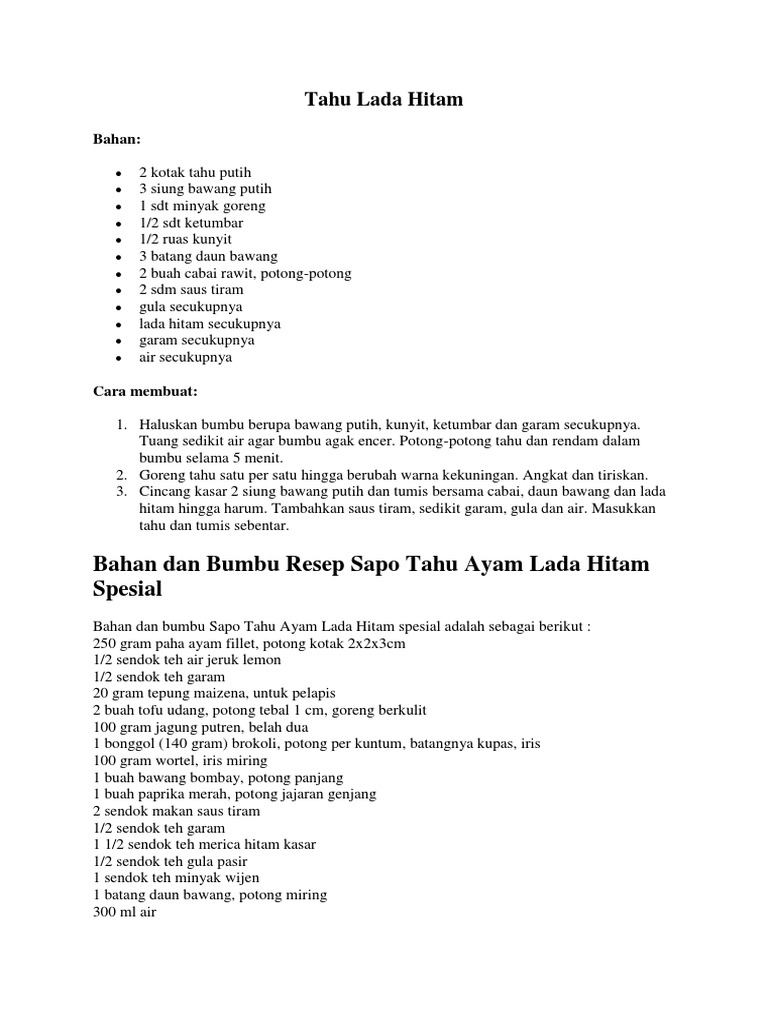 Sapi lada hitam siap disajikan dengan nasi hangat. Tentunya hal ini dikarenakan banyaknya sayuran yang dimasak untuk hidangan ini. 1.893 resep sapo tahu ala rumahan yang mudah dan enak dari komunitas memasak terbesar dunia! Lada (piper albi linn) adalah tanaman yang kaya akan kandungan kimia, seperti minyak lada, minyak lemak, juga pati. Resep sapo tahu seafood berikut ini bisa anda masukkan dalam daftar resep menu masakan yang praktis dan kaya akan nutrisi yang baik buat tubuh.